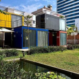 Ngoài những vị trí du lịch nhà container homestay có thể được xây dựng ở các khu phố với kiểu thiết kế hiện đại, nổi bật không lẫn đi đâu được. Gia chủ có thể dễ dàng trang trí cho công trình của mình bằng việc trồng thêm cây xanh hoặc bố trí các khu tiểu cảnh hồ nước, hòn giả sơn,…